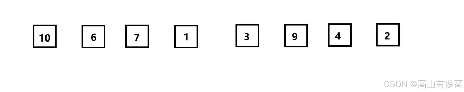 示例:假设存在数组:[10, 6, 7, 1, 3, 9, 4, 2]