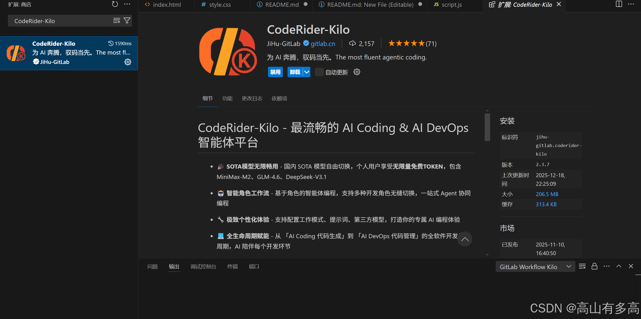 极狐CodeRider-Kilo是安装步骤非常简便的AI助手之一,这是让我非常惊喜的一点,并且非常轻量化