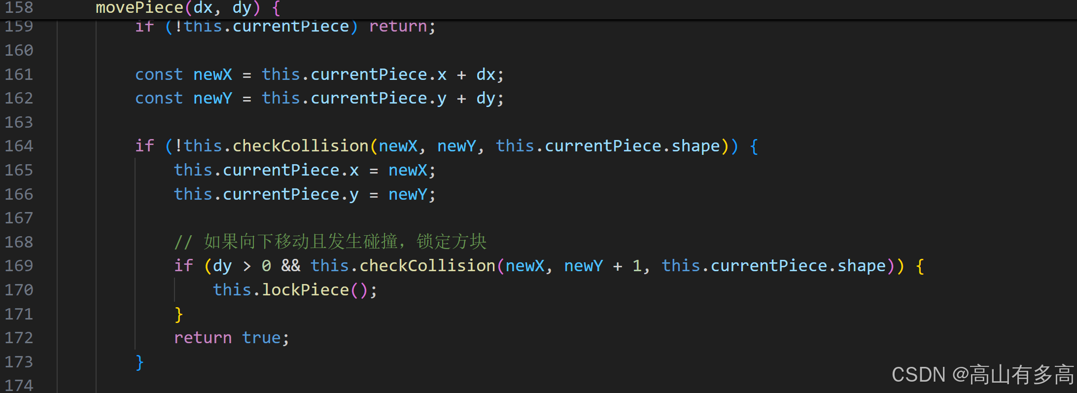 “这里我们使用一个预判机制。在方块真正旋转前,先模拟旋转后的坐标。如果模拟坐标触碰了墙壁或已存在的方块,我们就取消这次旋转指令。”