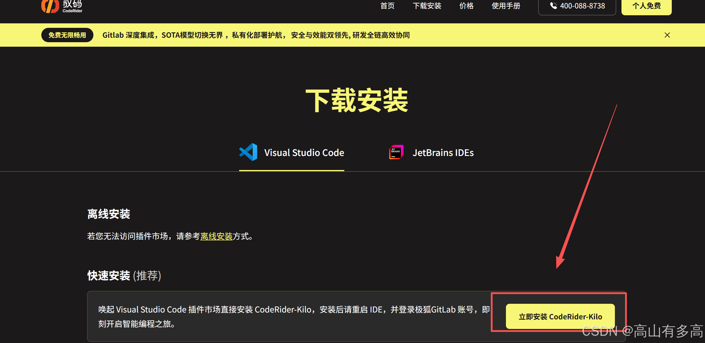 我们首先打开CodeRider-Kilo的官网:https://coderider.gitlab.cn/installation/?channel=csdn
