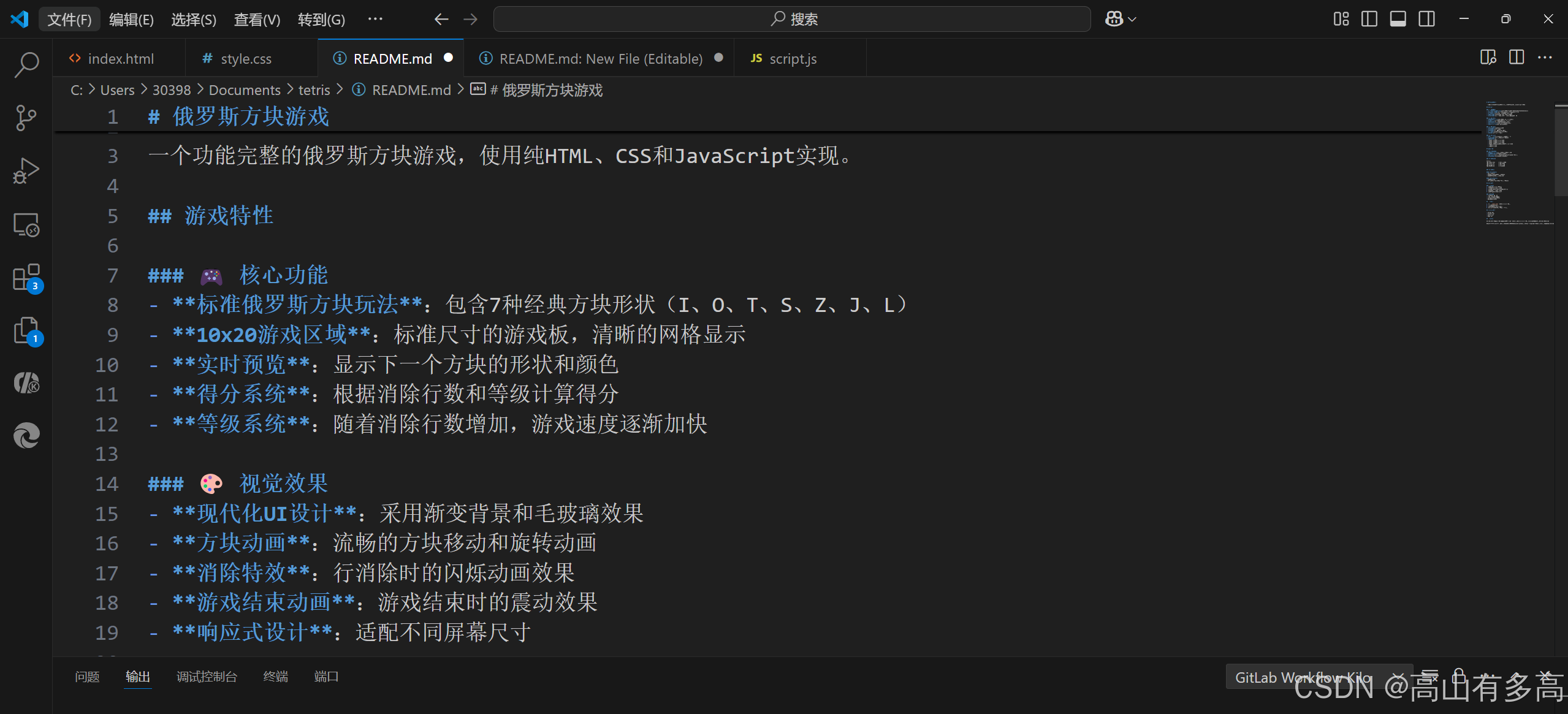 这次写俄罗斯方块,我给它提了更高的要求:不仅要能跑,还要有流畅的物理下落感和丝滑的消行特效。