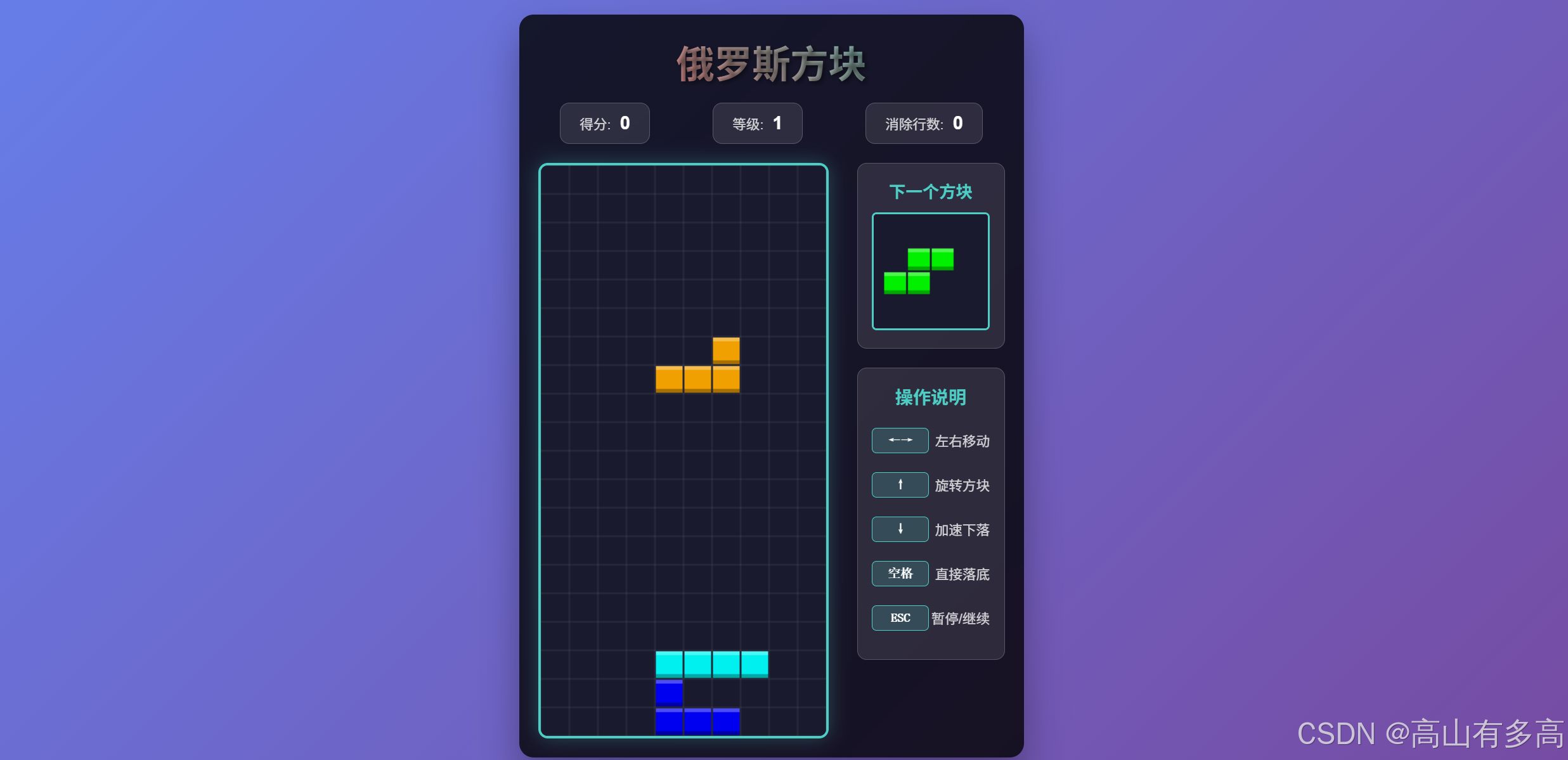 前几天睡前刷视频,被满屏的劣质消除类游戏广告吵得头疼。看着那些明明三岁小孩都能过、主播却硬生生“卡关”的画面,我这暴脾气一下就上来了。—— 突然心血来潮:既然这类游戏的核心逻辑就是消除,我为什么不干脆自己撸一个最纯粹、最经典的俄罗斯方块(Tetris)?