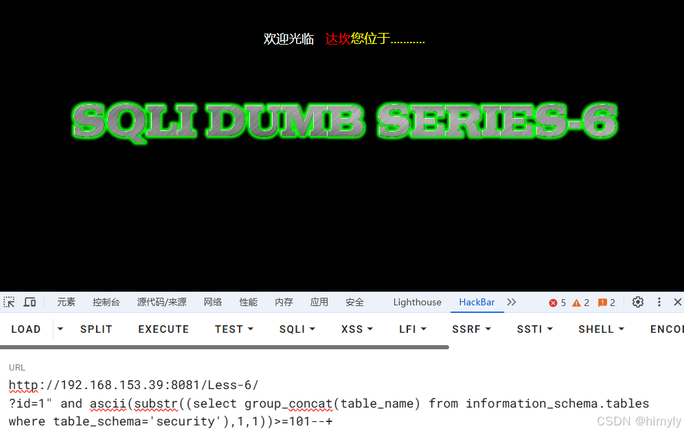 这一关可以使用报错注入、布尔盲注、时间盲注,报错注入第五关用过了具体参考上期文章sqli-lab靶场教程(1-5关),第六关这里我们使用布尔盲注。