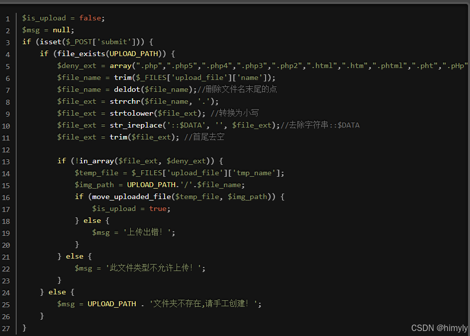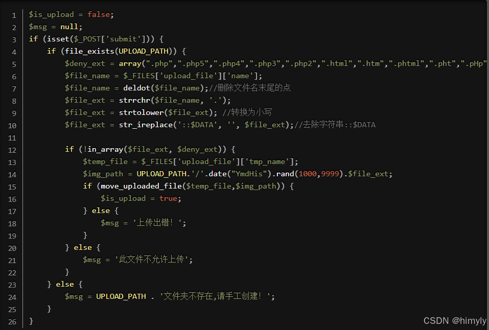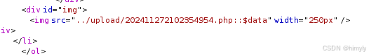 分析源码,发现::$DATA特殊符号没有加入黑名单,所以我们上传文件的时候可以抓包在文件名之后加上::$DATA