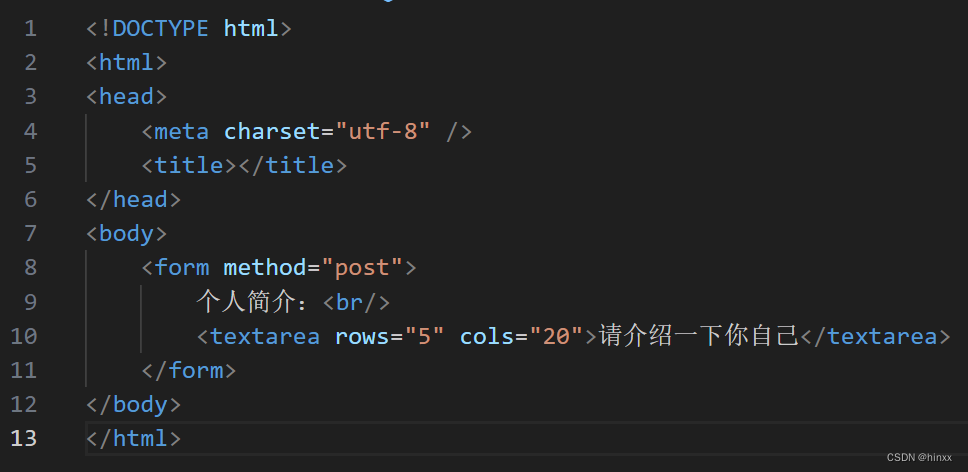 <textarea rows="行数" cols="列数" value="取值">默认内容</textarea>