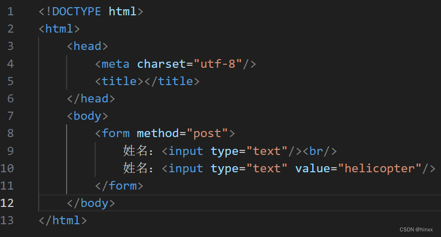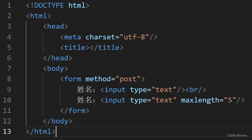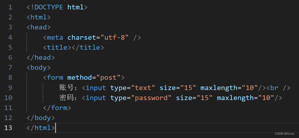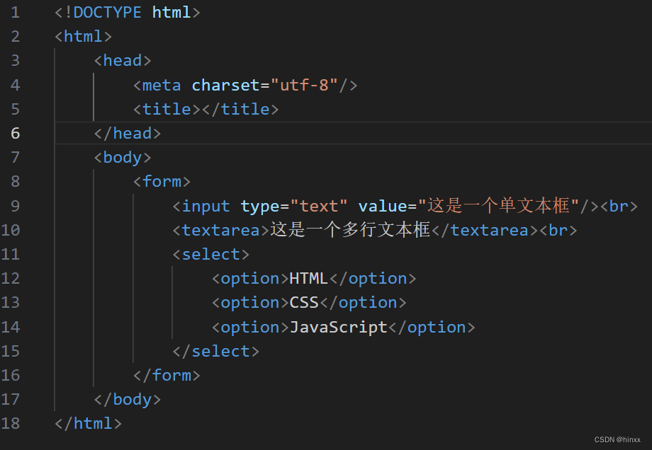 - (2)单行文本框和密码文本框使用的都是input标签,多行文本框使用的是textarea标签。