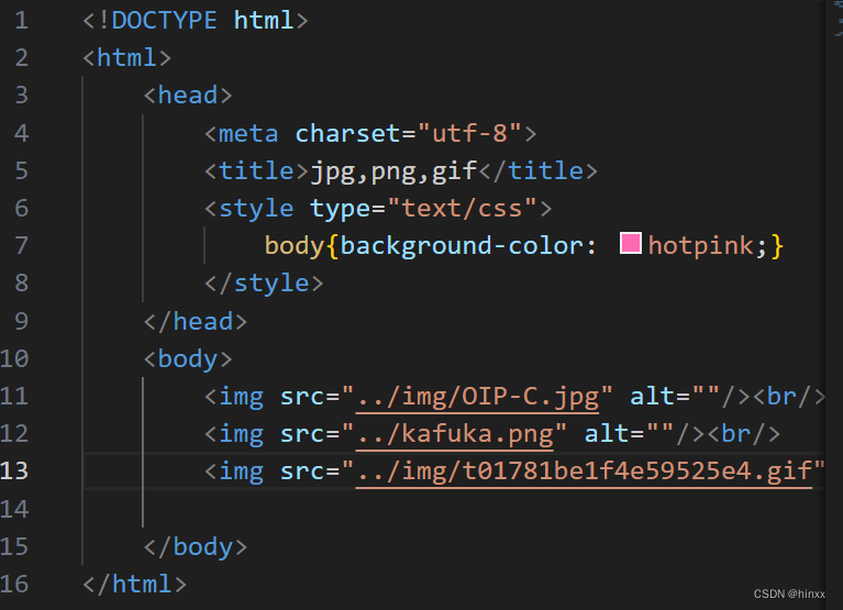 page1.html位于test文件夹下,OIP-C.jpg位于img文件夹下,而test文件夹与img文件夹处于同一层目录(兄弟关系)。也就是说OIP-C.jpg位于page1.html的上一级目录中的img文件夹下,因此src为“../img/OIP-C.jpg”。其中“../”表示上一级目录,我们要记住这种写法。