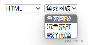 在HTML中,下拉列表由select和option这两个标签配合使用来表示的。
