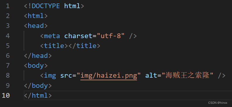 当我们把“img/haizei.png”去掉(也就是图片无法显示)后,此时可以看到浏览器会显示alt的提示文字,如下图所示。如果没有加上alt属性值,图片不显示时,就不会有提示文字。