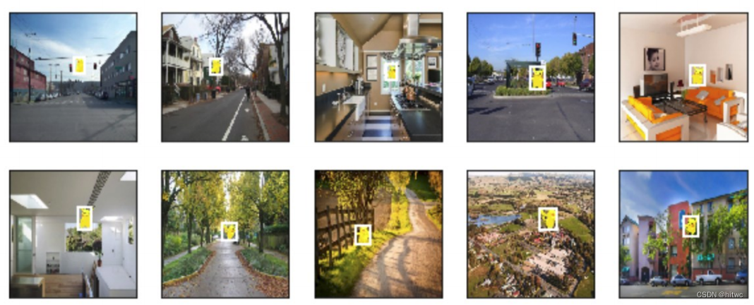 - 然后我们收集了一系列背景图像,并在每张图的随机位置放置一张随机的皮卡丘图像。