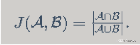 交并比:如何量化某个锚框好不好呢?一种直观的方法是衡量锚框和真实边界框之间的相似度。我们知道,Jaccard系数(Jaccard index)可以衡量两个集合的相似度。给定集合A和B,它们的Jaccard系数即二者交集大小除以二者并集大小:
