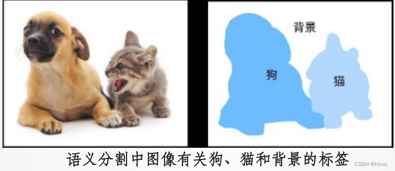 图像分割将图像分割成若干组成区域。这类问题的方法通常利用图像中像素之间的相关性。它在训练时不需要有关图像像素的标签信息,在预测时也无法保证分割出的区域具有我们希望得到的语义。