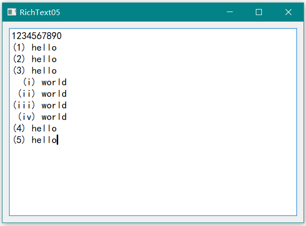 富文本列表的内容也比较少,列表的缩进只针对文本块,没有理会列表的前缀、后缀占用的空间。
