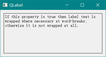 QString str = "If this property is true then label text is wrapped where necessary at word-breaks; otherwise it is not wrapped at all."; label0->setText( str); label0->setWordWrap (true) ; label0->setAlignment (Qt::AlignTop);