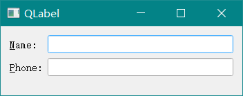 QApplication::setStyle (QStyleFactory::create ("fusion")); //使用fusion会始终显示下划线 QLineEdit *nameEdit = new QLineEdit(this); QLabel *nameLabel = new QLabel("&Name:", this); nameLabel->setBuddy(nameEdit); QLineEdit *phoneEdit = new QLineEdit(this); QLabel *phoneLabel = new QLabel("&Phone:", this); phoneLabel->setBuddy(phoneEdit);在上面的代码中,当用户按Alt+N时,焦点跳转到Name字段,当用户按Alt+P时,焦点跳转到Phone字段。