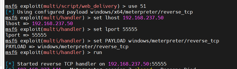set LHOST 192.168.1.100 # 与 handler 相同的 IP