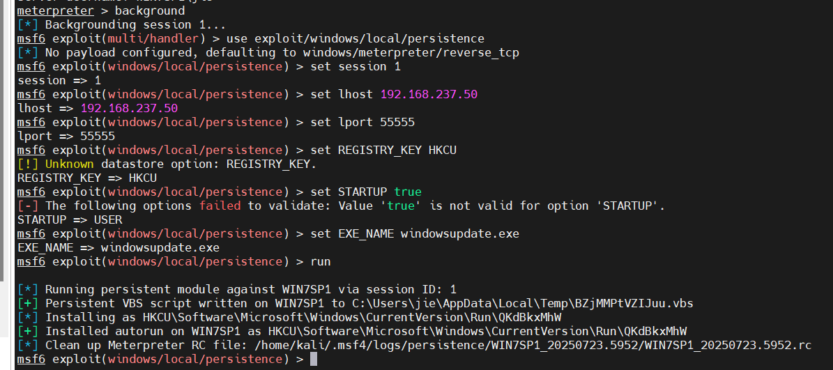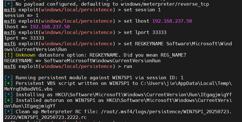 在这里,我们使用persistence模块来进行创建基础持久化后门。