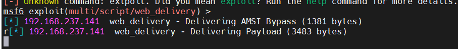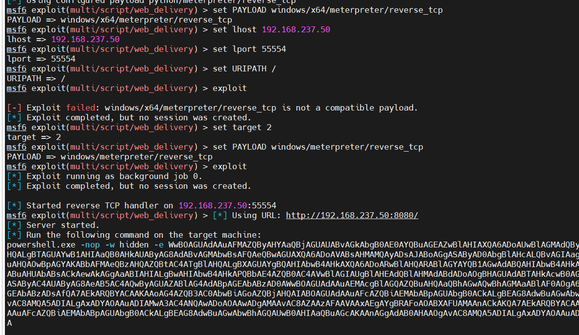 执行后,MSF 会在本地启动一个 HTTP 服务器,并生成一段 PowerShell 代码