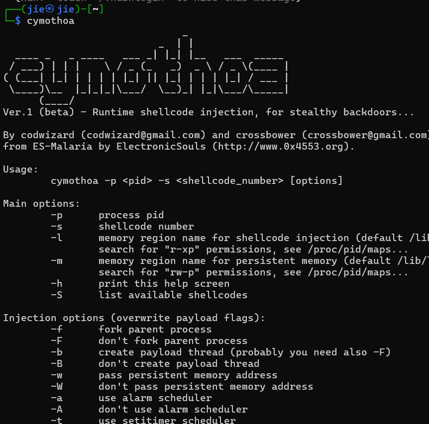 这里我只说明其如何使用,这个工具kali自带,想要自己下载的,项目地址:cymothoa download | SourceForge.net