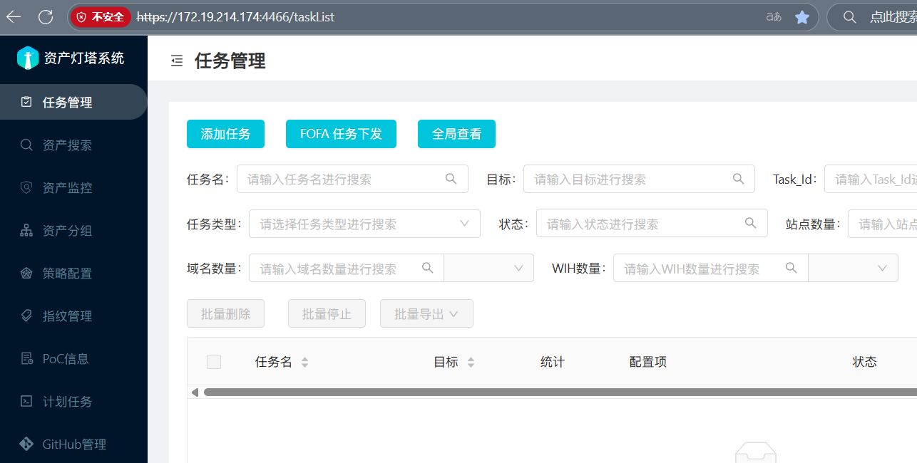cd ARL-plus-docker-main docker-compose up -d # 启动服务(参考README配置) # 访问Web界面:http://<IP>:5003,创建任务扫描目标(域名/IP段)。