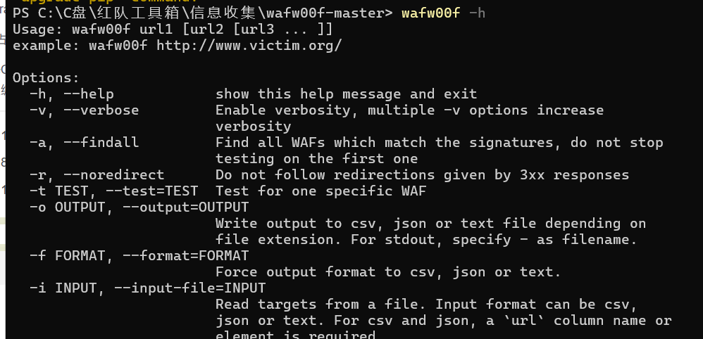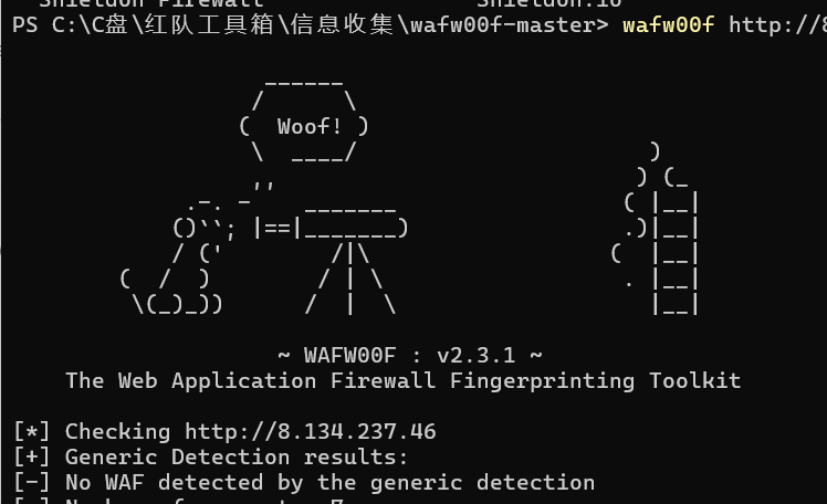wafw00f https://target.com # 单目标检测 wafw00f -l urls.txt # 批量检测
