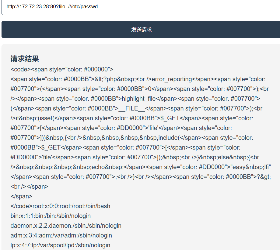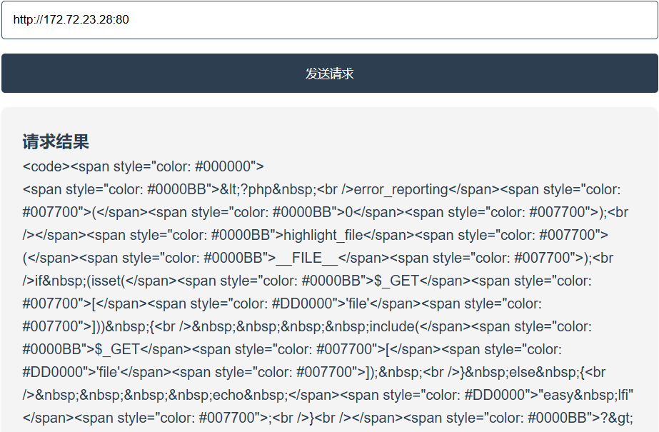 // 包含并执行"file"参数指定的文件(存在本地文件包含漏洞)