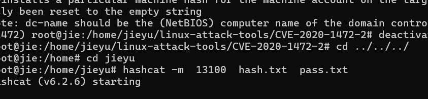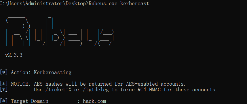 mimikatz导出的格式为.kirbi,用 hashcat 爆破,需将 .kirbi 格式转换为 hashcat 支持的格式,也可以通过Rubeus直接生成hashcat支持的格式