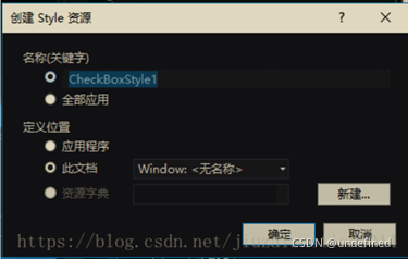 在“定义位置”中,第一行“应用程序”表示样式会放到app.xaml中,第二行放到当前xaml文档中;第三行表示自定义资源字典。