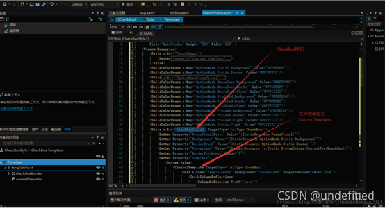 (3)点击确定后就生成了相应的样式,样式中也包含ControlTemplate。这是就可以自己来更改了。