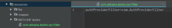 2、resources目录下创建META-INF\dubbo目录,新建com.alibaba.dubbo.rpc.Filter名称的文件。