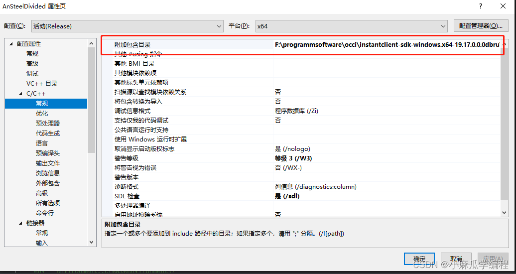 配置OCCI环境包括设置VS环境为releasex64,添加C/C++的附加库包含目录、链接器的附加库目录和附加依赖项,确保包含oraocci19.lib和oraocci19d.lib。如果遇到找不到dll的问题,可将其复制到系统目录或工程目录下。最后,环境变量问题可能导致连接错误,尝试将基本组件的所有dll拷贝至system32。