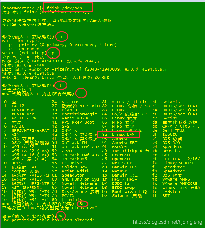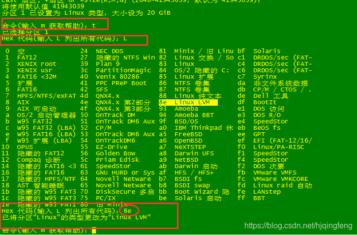 Hex 代码(输入 L 列出所有代码):8e #---选择lvm的 编号 :8e