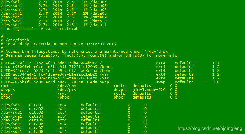 这种方式我们在实际应用中案例。直接将服务器上的一块硬盘划分为一个分区。服务器环境:centos6.9 1.8T*2硬盘做raid1 (装系统); 其余4T*12 raid0.