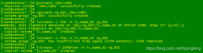 涉及到的LVM卷命令 #pvcreate、#vgcreate、#lvcreate