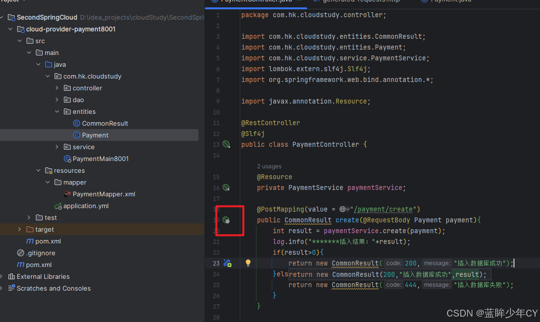 上述的8001和80工程的entities包中Payment实体和公共响应CommonResult实体出现了重复