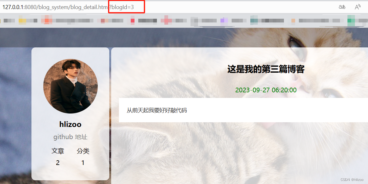 💙前端代码要做的,就是构造请求向服务器获取到指定blogId的具体博客数据,然后接收服务器返回的响应并展示到页面上