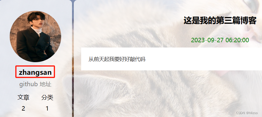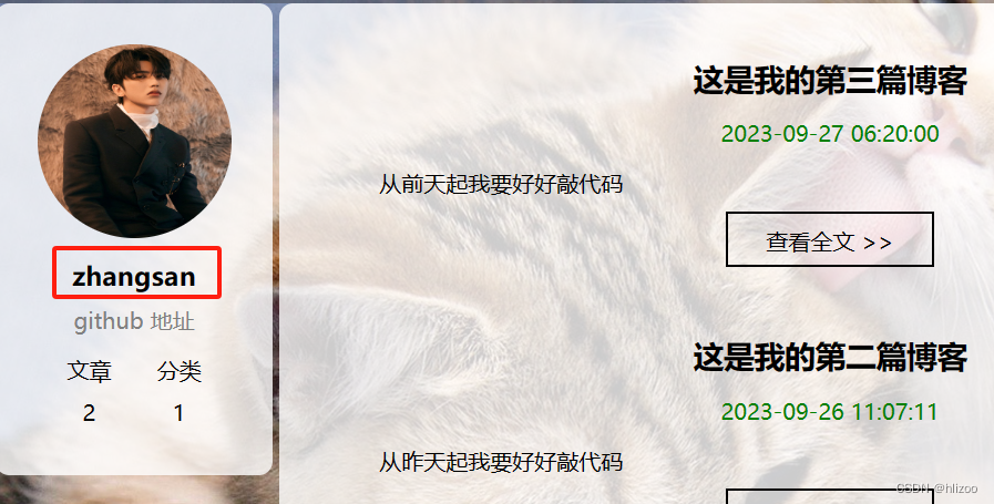 功能五:实现显示个人信息;在博客列表页左侧显示当前登录用户的信息;在博客详情页左侧显示博客作者信息