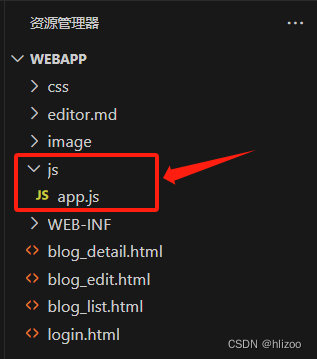 ①因为每个页面都需要添加一个get方法的ajax请求,所以我们先在WEBAPP下创建一个文件夹,取名为js,再在js文件夹下面添加一个文件,取名为app.js