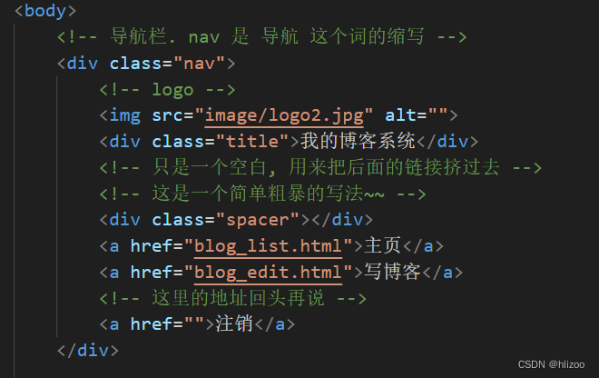 <!DOCTYPE html> <html lang="en"> <head> <meta charset="UTF-8"> <meta http-equiv="X-UA-Compatible" content="IE=edge"> <meta name="viewport" content="width=device-width, initial-scale=1.0"> <title>博客详情页</title> <link rel="stylesheet" href="css/common.css"> <link rel="stylesheet" href="css/blog_detail.css"> </head> <body> <!-- 导航栏. nav 是 导航 这个词的缩写 --> <div class="nav"> <!-- logo --> <img src="image/logo2.jpg" alt=""> <div class="title">我的博客系统</div> <!-- 只是一个空白, 用来把后面的链接挤过去 --> <!-- 这是一个简单粗暴的写法~~ --> <div class="spacer"></div> <a href="blog_list.html">主页</a> <a href="blog_edit.html">写博客</a> <!-- 这里的地址回头再说 --> <a href="">注销</a> </div> <!-- 页面的主体部分 --> <div class="container"> <!-- 左侧信息 --> <div class="container-left"> <!-- 这个 div 表示整个用户信息的区域 --> <div class="card"> <!-- 用户的头像 --> <img src="image/kun.jpg" alt=""> <!-- 用户名 --> <h3>hlizoo</h3> <!-- github 地址 --> <a href="https://www.github.com">github 地址</a> <!-- 统计信息 --> <div class="counter"> <span>文章</span> <span>分类</span> </div> <div class="counter"> <span>2</span> <span>1</span> </div> </div> </div> <!-- 右侧信息 --> <div class="container-right"> <h3></h3> <div class="date"></div> <div id="content"> </div> </div> </div> <!-- 引入 ajax 的依赖 --> <script src="https://code.jquery.com/jquery-3.7.1.min.js"></script> <!-- 引入 editor.md 的依赖 --> <link rel="stylesheet" href="editor.md/css/editormd.min.css" /> <script src="editor.md/lib/marked.min.js"></script> <script src="editor.md/lib/prettify.min.js"></script> <script src="editor.md/editormd.js"></script> <!-- 引入 app.js,判断是否登录 --> <script src="js/app.js"></script> <script> function getBlog(){ $.ajax({ type:'get', url:'blog' + location.search, success:function(body){ //根据服务器返回的响应内容,构造页面 //第一步:构造标题 let h3 = document.querySelector('.container-right h3'); h3.innerHTML = body.title; //第二步:构造时间 let dateDiv = document.querySelector('.container-right .date'); dateDiv.innerHTML = body.postTime; //第三步:构造内容 //格式:editormd.markdownToHTML('content',{markdown:markdown}); editormd.markdownToHTML('content',{markdown:body.content}); } }); } getBlog(); checkLogin(); </script> </body> </html>(3)博客编辑页blog_edit.html