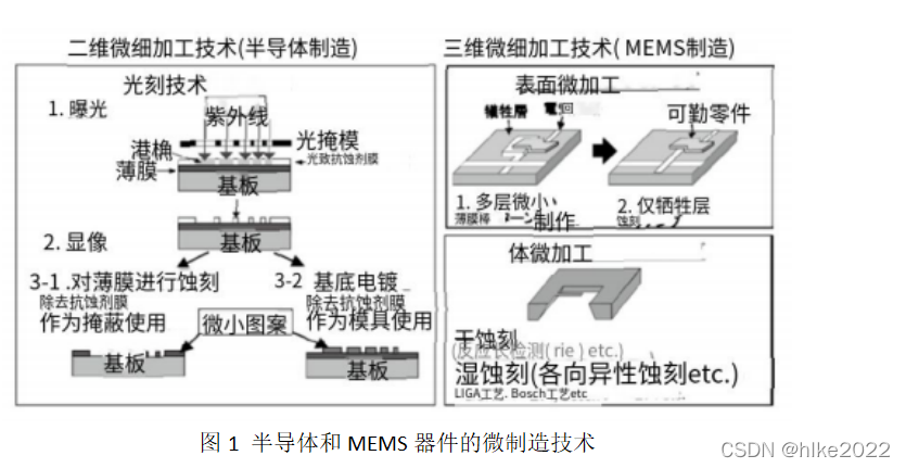 在MEMS器件中,通过组合该二维光刻法和三维微加工双方的微细加工技术并反复实施,同时进行超微细电子电路和微小机械要素的制造、组装。