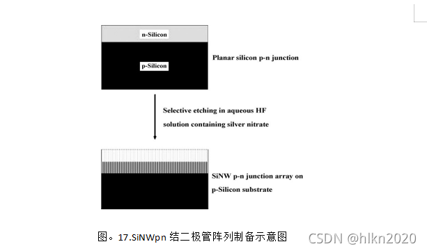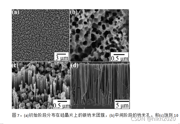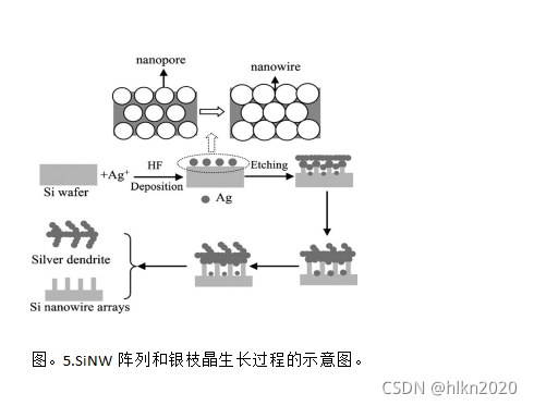 - 纳米线合成——虽然通过自选择性化学镀控制合成SiNW阵列的方法已经开发出来,但是推广这种方法来生产各种半导体纳米线还为时过早。例如,在锗的自选择性化学镀中,在蚀刻的锗晶片表面发现了中间纳米孔。薄孔壁随后的化学溶解被认为扩大了孔并导致相邻孔的合并。因此,在足够长的蚀刻时间后,高密度的纳米线应该保留在表面上。然而,很少有人关注自选择性化学镀期间锗晶片的演变。我们相信,自选择性化学镀也可以扩展到其他材料,如碳化硅和氮化镓。因此,不仅迫切需要研究硅上自选择化学镀的特性,而且需要寻找新的应用和制造其他半导体纳米线。