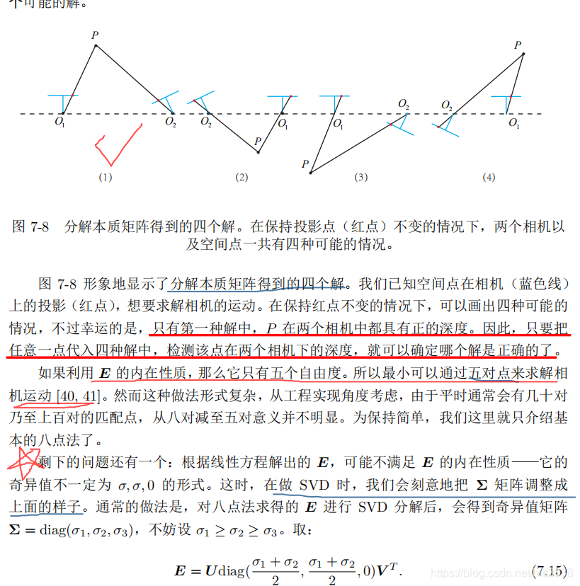 ,选择重投影误差比较小的那个作为最终的运动估计矩阵。