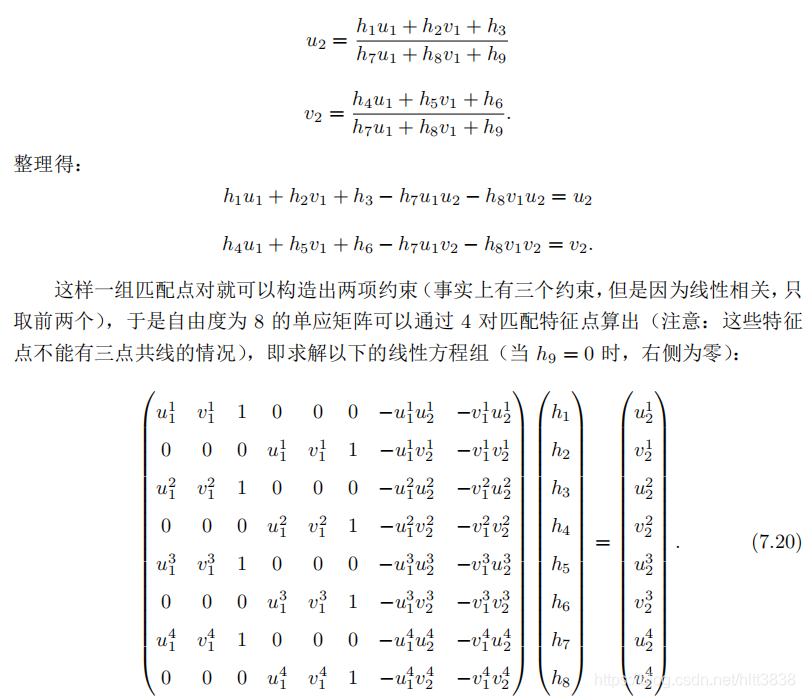 单应矩阵通常描述处于共同平面上的一些点,在两张图像之间的变换关系。考虑在图 像 I
