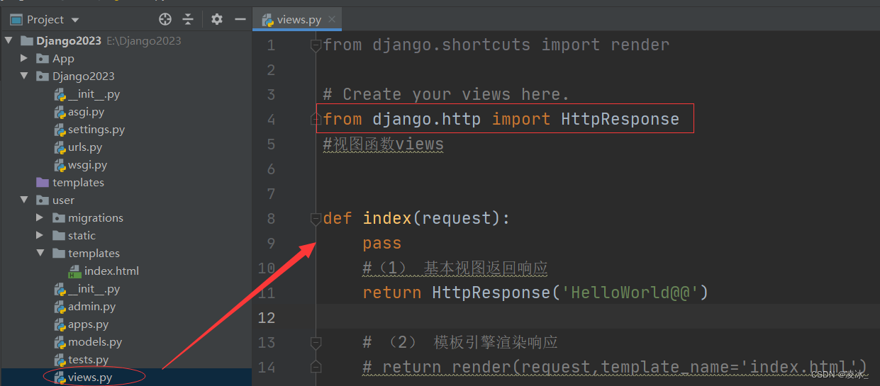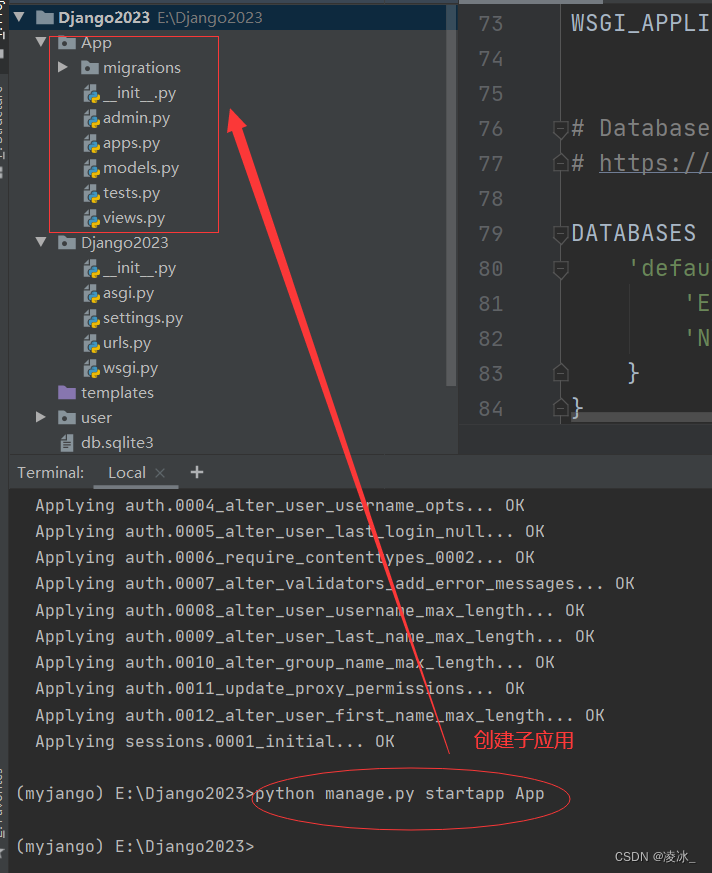 1、使用命令来创建:django-admin startproject Django2023 工程名为Django2023