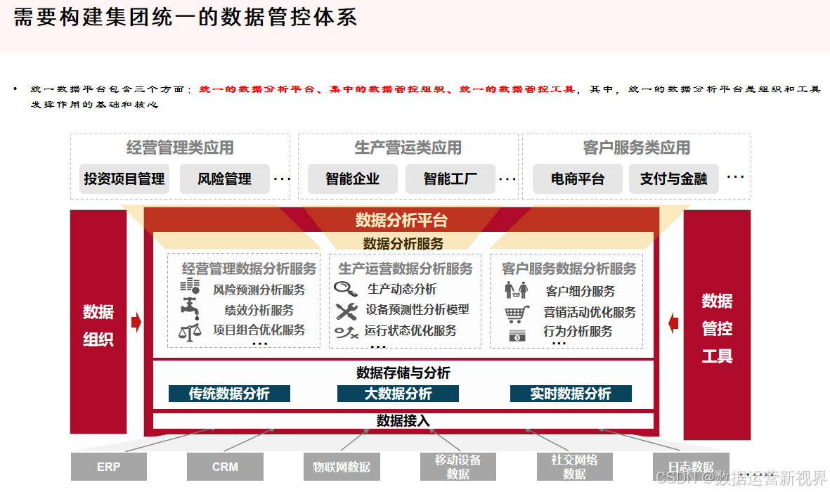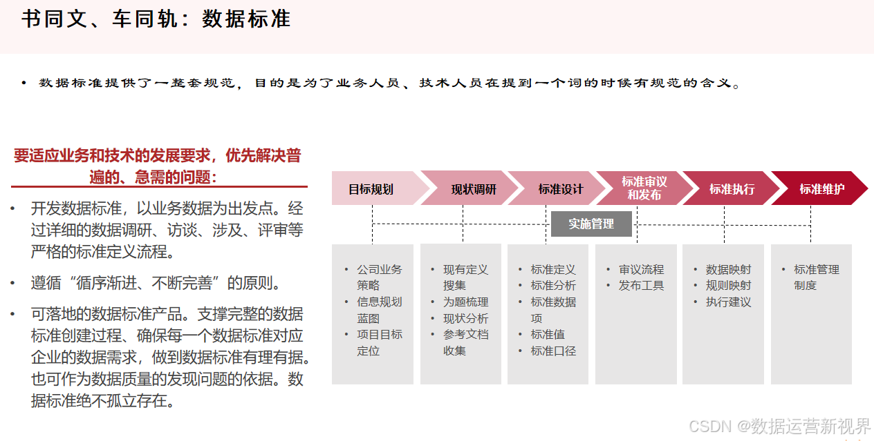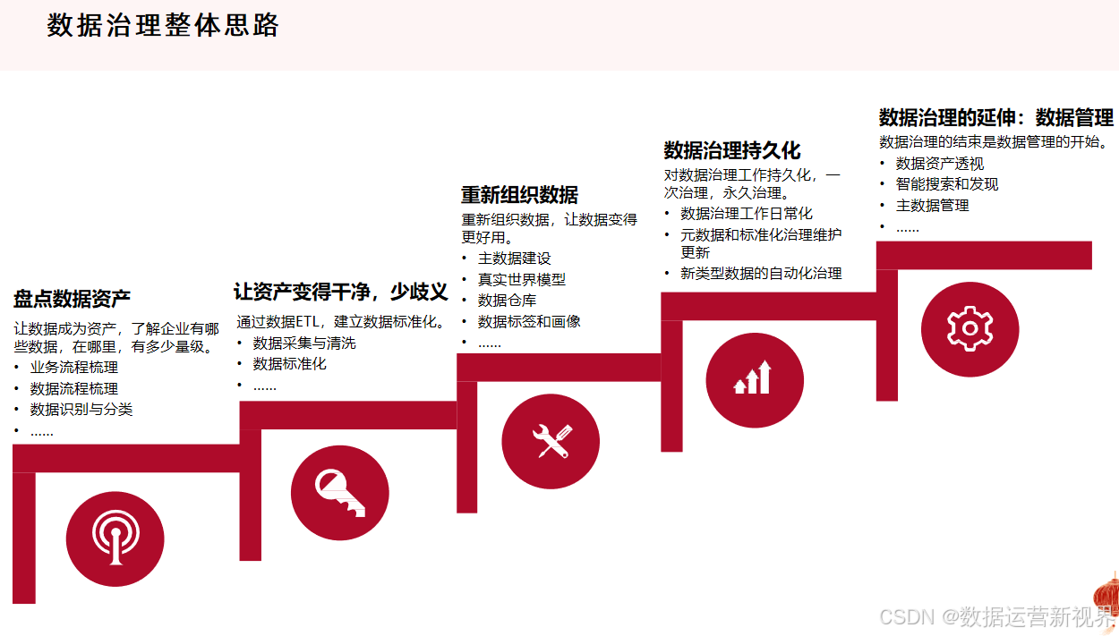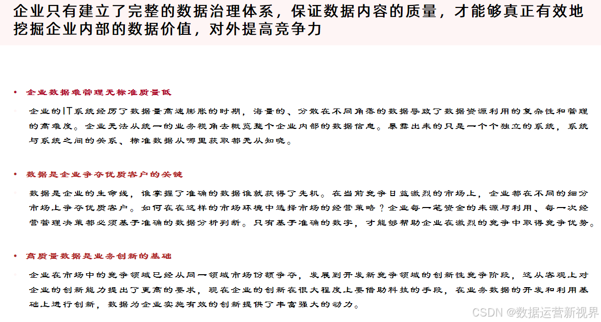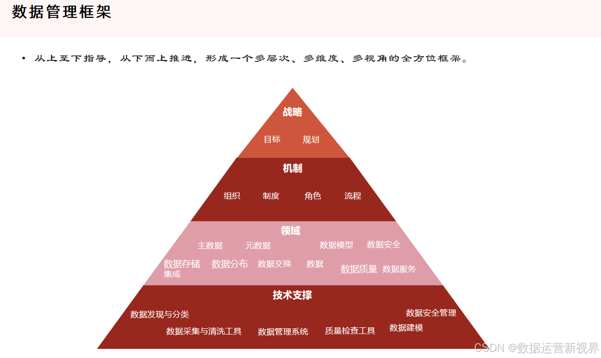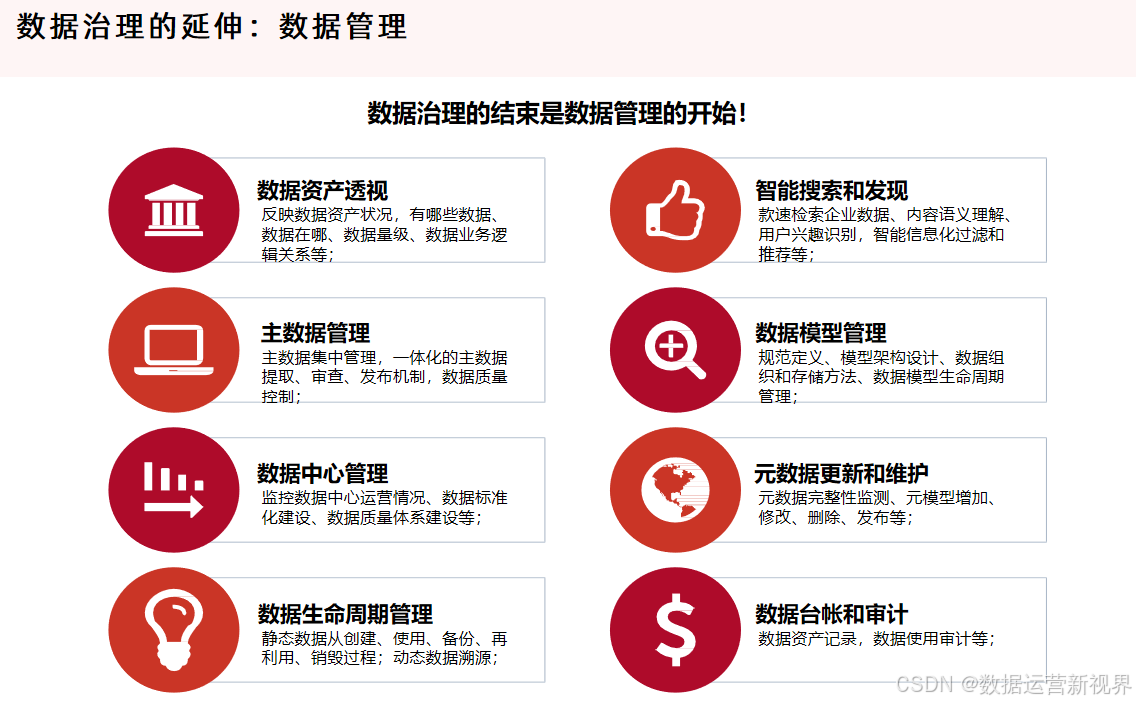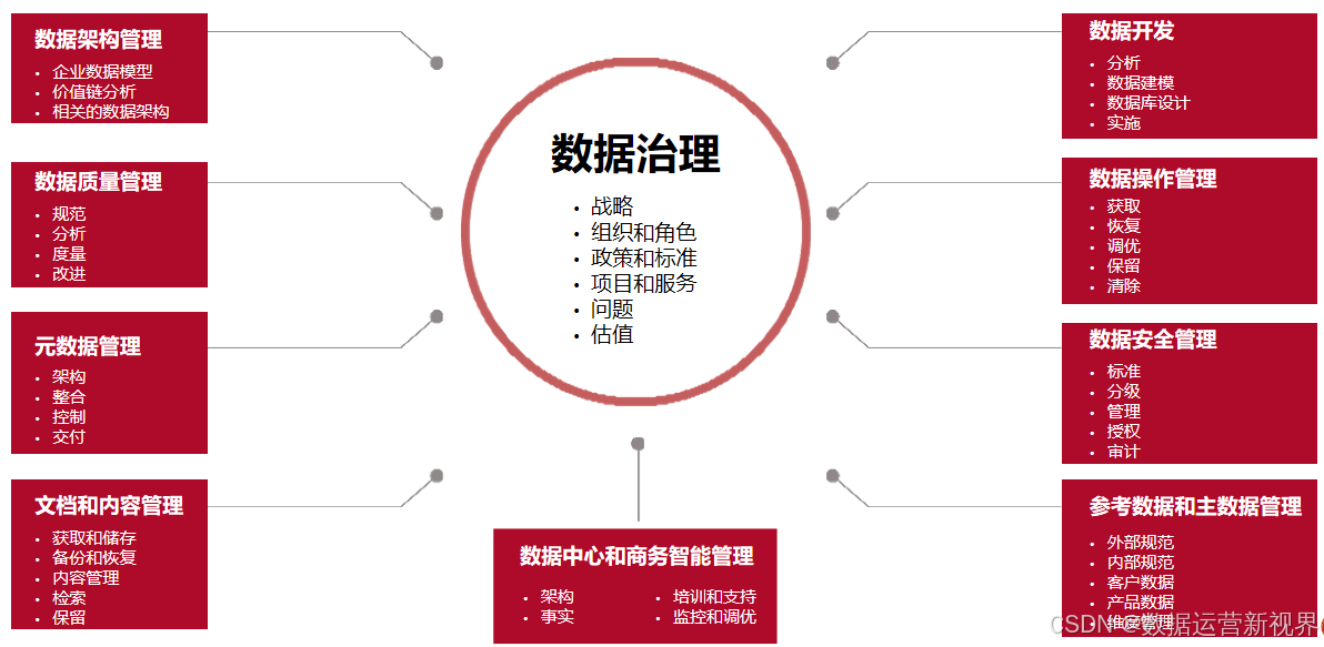 数据治理(Data Governance)则是确保数据的可用性、完整性、安全性和一致性的一系列管理流程和方法,涵盖了数据的战略规划、政策制定、责任分配和数据生命周期管理。