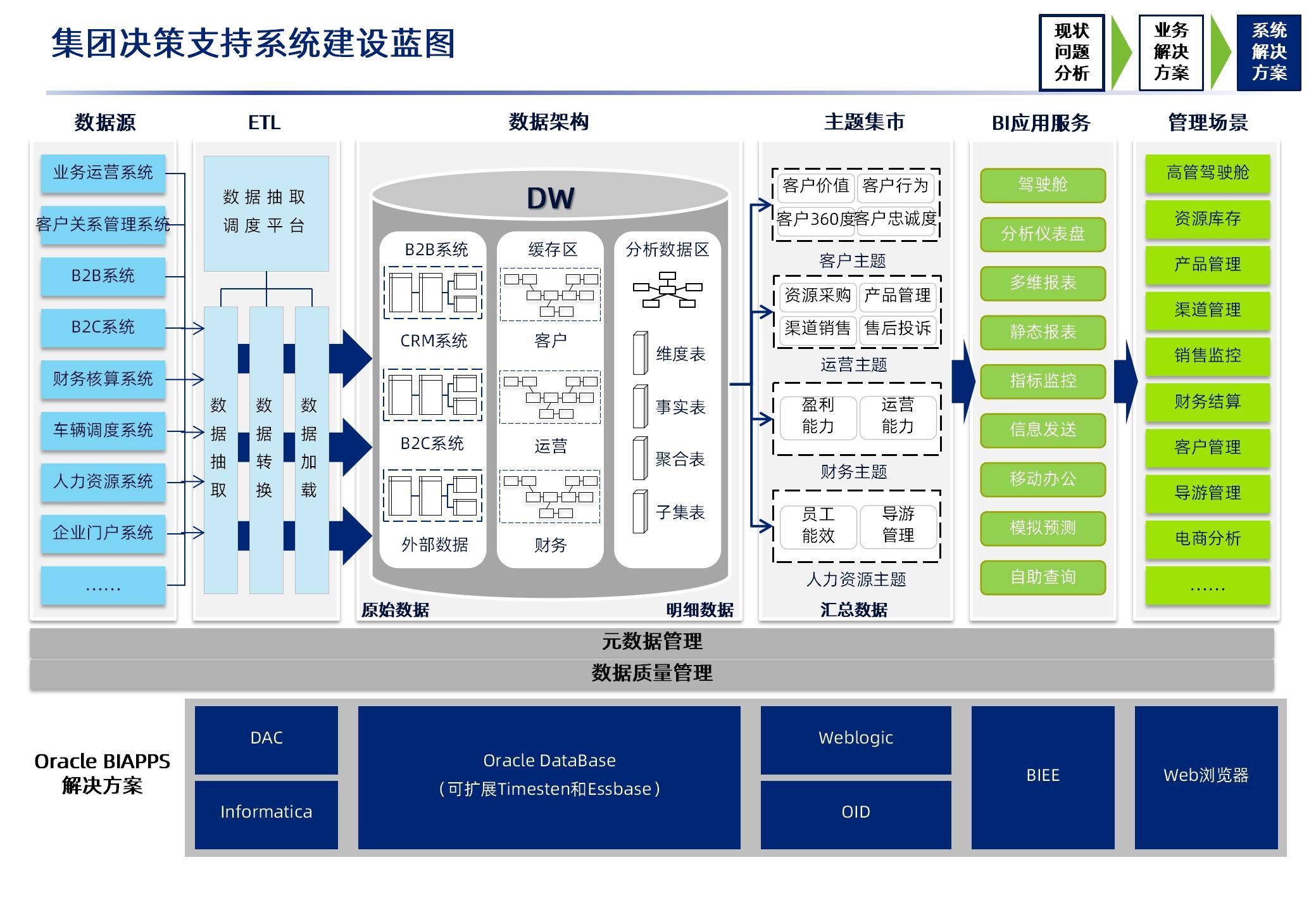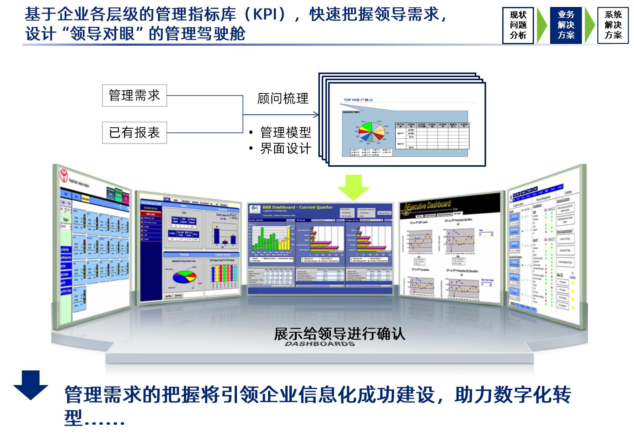 集团整体架构与商务智能解决方案的落地需分阶段推进:初期聚焦数据治理与组织调整,建立统一标准与协作机制;中期完善数据中台与商务智能工具,实现核心业务场景的数字化覆盖;后期引入AI技术,构建预测性分析与自主决策能力。整个过程需平衡“集权”与“分权”——总部通过数据掌控全局,业务单元通过智能工具自主经营,最终实现集团规模优势与业务单元灵活性的双重释放,为可持续发展注入持久动力。