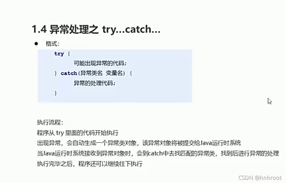 如果程序出现异常需要自己来处理,有两种方案,一种try...catch,一种是throws