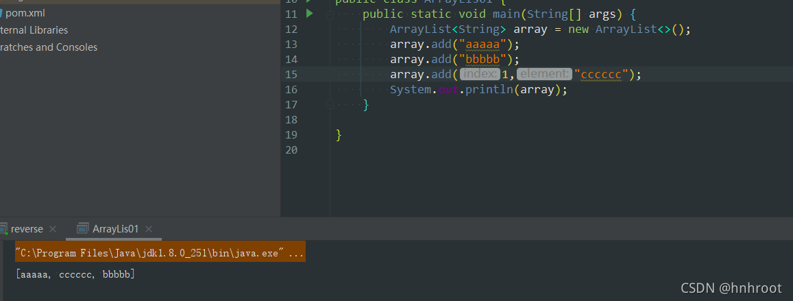 add不加索引是在最后一位添加,添加了索引是在指定索引添加,如图所示,添加索引1之后,内容cccccc就变成下标为1了,原本下标为1的给后边走一位